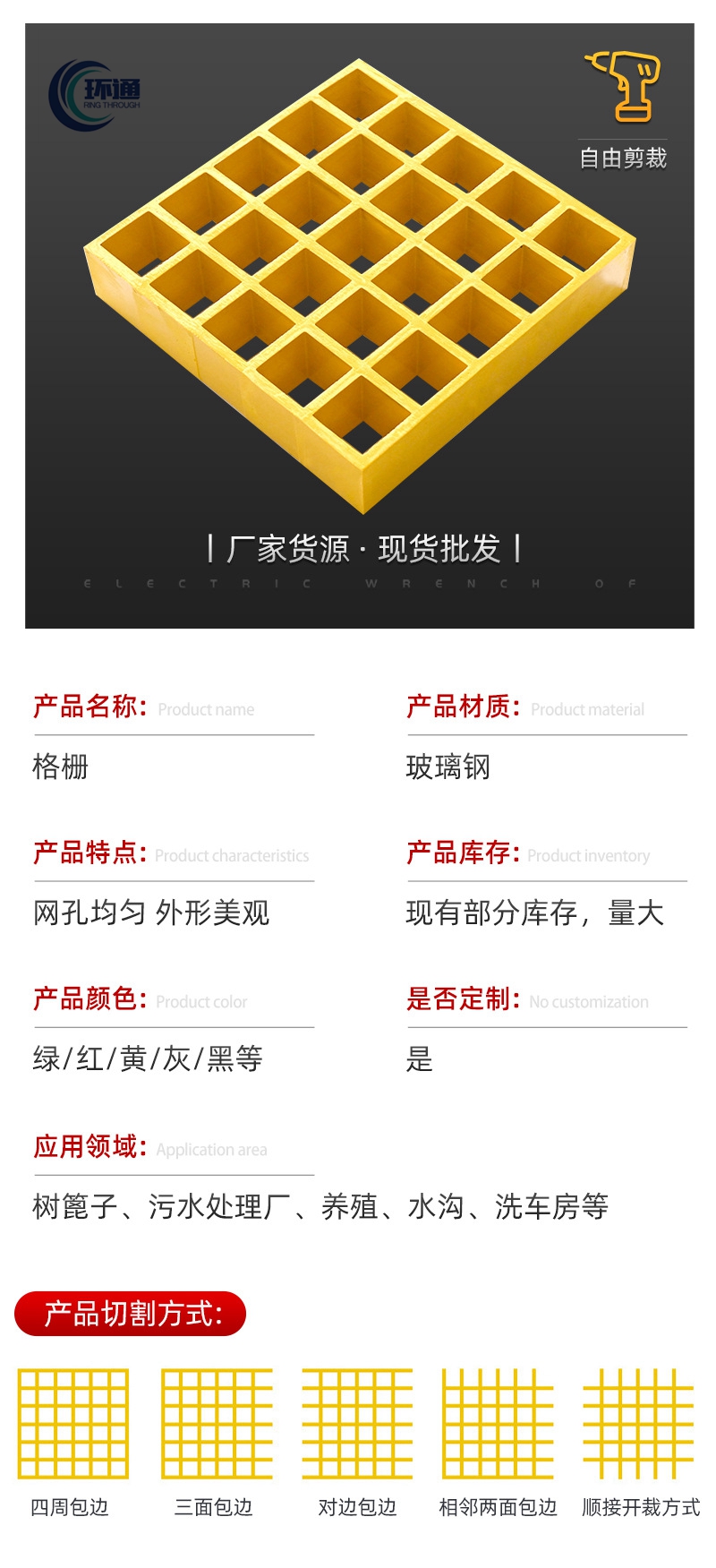 山東環通復合材料有限公司是從事玻璃鋼格柵的生產廠家,公司位于山東濰坊安丘市,產品分為格柵和格柵蓋板,玻璃鋼格柵主要分為25*25,38*38,42*42。顏色分為:綠色,紅色,灰色,黃色,藍色等。公司生產玻璃鋼產品為:公司生產玻璃鋼產品為:玻璃鋼儲罐,玻璃鋼管道,玻璃鋼夾砂管,玻璃鋼防腐,玻璃鋼冷卻塔,玻璃鋼化糞池,玻璃鋼保溫罩等。